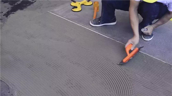 在大板铺贴的时候,一定要使用齿型刮板将粘结剂均匀涂刷在大板背面、墙面或地面,注意刮胶时沿大板短边刮齿纹,且墙面与大板需朝同一方向刮齿纹,便于空气排出,避免瓷砖胶空鼓而造成脱落问题。铺贴后一个小时后,检查是否出现空鼓现象。敲击大板瓷砖的表面,若听到“空空”声的地砖,必须设法重新铺贴,瓷砖铺贴结束后24小时,可进行嵌缝施工。
