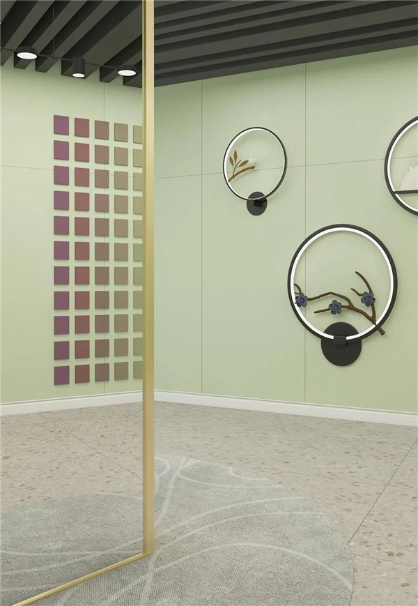 要说鹭什么时候最美?从渔翁头戴箬笠,身披蓑衣,在斜风细雨里欣赏春天水面的景物,感受绿意昂扬的生命带来的愉悦,塔芙绸釉「鹭·迅速奔驰」系列之「鹭·嫩绿」从鲜活的生命颜色,褪去岁月的沉重,盘活沉闷的空间,造就一方灵动的体验,再点以搭配上黑色园艺的装饰,以及眼影色盘似的方格,简约而不简单,创意而又有内涵。这样的空间,试问谁又能不喜爱呢?
