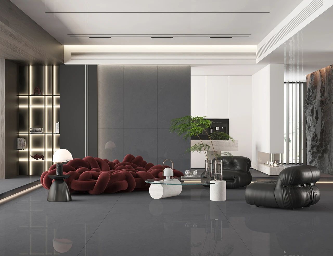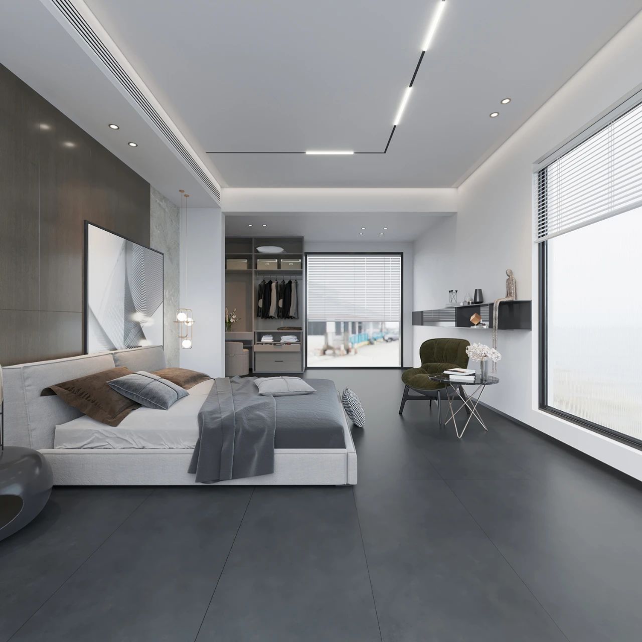 深灰,将稳重大气进行到底,既不浮华也不尘俗,演绎超凡质感的空间意境。